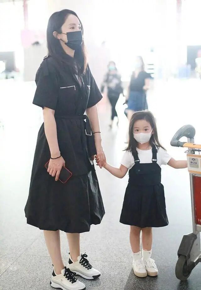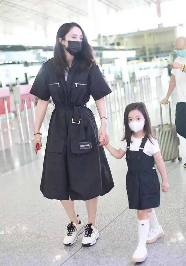 而她们的另一身机场穿搭则是遵循款式互补的原则,整体色调统一完整,但是在款式上却各有各的优点。妈妈董璇依旧选择一身黑,风衣款黑色连衣裙干净利索,宽松版型配上外扎腰形式,划分身材比例,修饰身材,难怪能找一个比自己小10的男朋友呐!这未免也太有少女感了吧,简单又减龄。