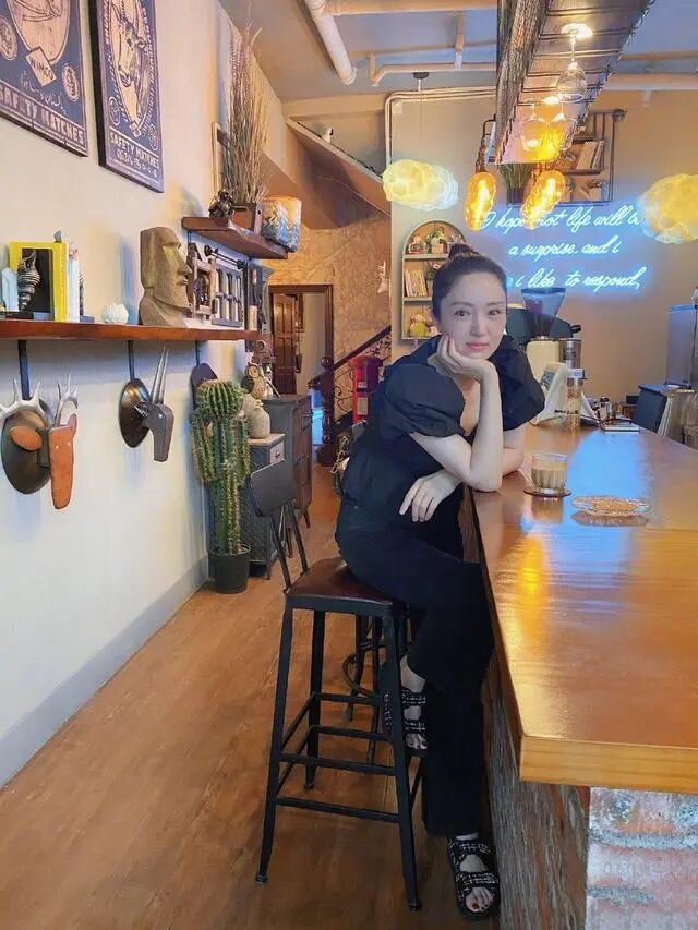董璇在不带女儿出去的时候也酷爱穿黑衣,依旧是我们都熟悉的干净利索的丸子头,为了搭配直角衣领款泡泡袖上衣煞费了苦心,颈肩比线条因为有了发型的加持变得更加高傲迷人。为了不破坏整体氛围,她选择下搭一条黑色直筒西装裤,有板有眼的款式干净利落,非常符合她辣妈的身份。