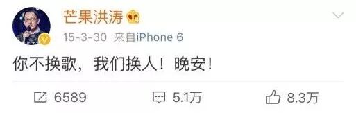 2015年4月,邓紫棋与《我是歌手》节目组在双年巅峰会的选歌上产生不一样的意见,导演洪涛更是在微博喊话:不换歌?就换人!