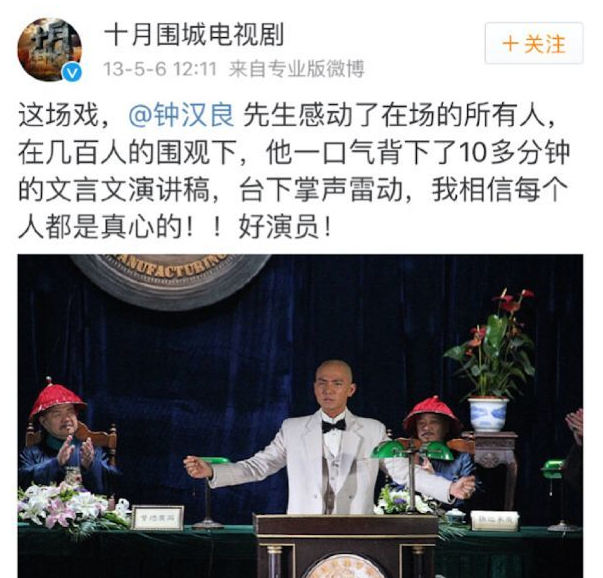 他永远都会是一个好演员,大演员。所谓的大演员就是他非常认真,非常之敬业。