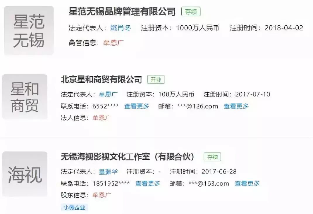 在内地6家企业中,牟恩广在北京星和商贸有限公司、无锡爱美神投资有限公司担任法人代表;