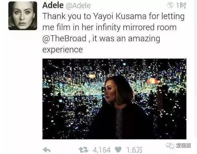 天后Adele与草间弥生的画作合影,激动得发Ins