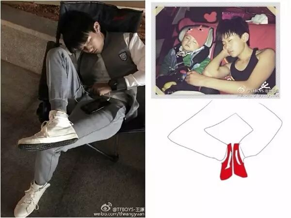 易烊千玺超不符合人体科学的睡姿及被粉丝恶搞的图。