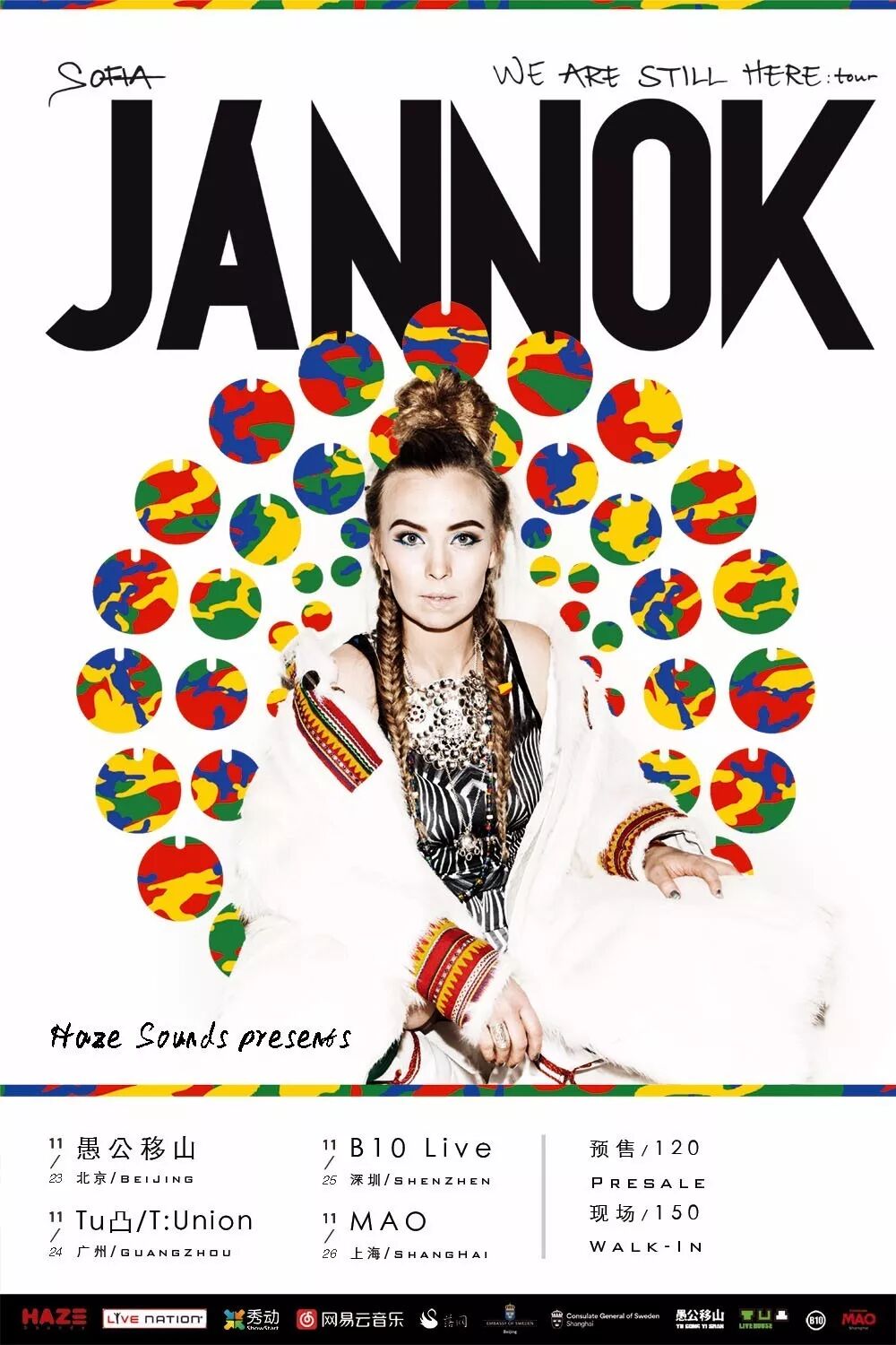2010年5月23日至30日,Sofia Jannok 受邀参加上海世博会瑞典馆的国家馆日庆祝活动表演,并在杭州、成都、深圳、天津、北京等城市作巡回演出。时隔七年,这位萨米族的民谣女神再次访问中国,北上广深四站,与女神的七年之约,怎么可以错过!