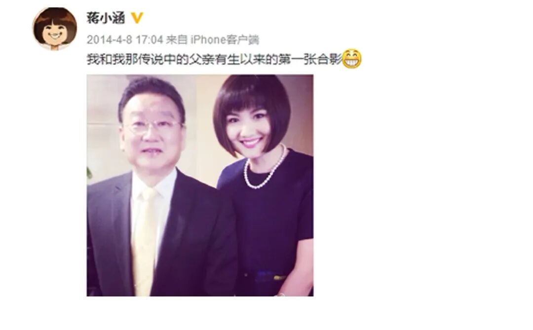 在2014年时,蒋小涵发了一条微博,“我和我那传说中的父亲,第一次合影”原来在蒋小涵出道时,被大家误认为蒋大为是她的父亲,这条微博一发出,向大家解释了自己和蒋大为的关系。