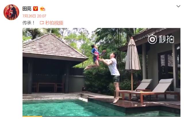 不只是经常晒老婆,这些年从奥运冠军变为娱乐明星后,田亮也开启了晒片狂魔模式,频频在微博上秀女儿、秀儿子、秀老婆……