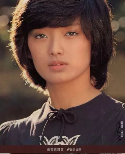 经过两年的舞台磨砺,让她歌艺大涨的同时也获得了电影公司的青睐,1974年,她在《伊豆的舞女》中担纲演出,这是一部根据曾获得诺贝尔文学奖的川端康成的同名作品改变而成的电影,她那清纯灵动如小鹿般的眼神,皎洁清新如百合花般的面容,还有眼角眉梢那一抹似山岚晨霭般的忧伤,瞬间就攫住了每个观众的心。