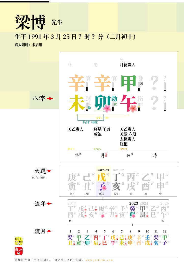 但是,作为其二,也需要看到,彼时梁博正走在 2007~2017 十年间的「己丑」大运,持续对他的年柱「辛未」,形成「丑未冲」——既冲击他的年柱、父母宫,也冲击着他的「财星」——考虑到,他出身于普通工人家庭,如此「冲财」,想必在金钱、预算问题上会有相当多的难言之隐,而这些问题,也着实影响了梁博在内地娱乐圈的发展,在当时,难以获取到充分的市场资源,只能自己稳扎稳打,潜心学习、深造,奉行「专业主义」,走不同寻常的「灵魂歌手」之路。