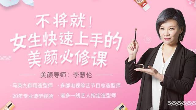 独家明星美妆秘籍和学习资料:作为台湾顶级造型师,慧伦老师将会邀请她的明星姐妹淘,为大家分享她们的私人护肤、美妆小Tip。