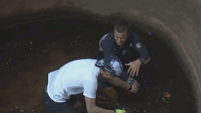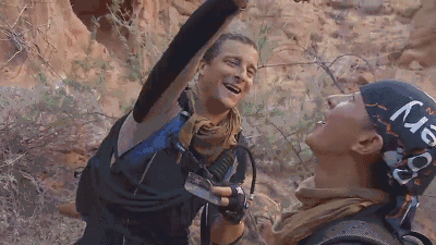 为了给身体降温并且维持体力,贝爷直接来了一个荒野求生的绝招——用尿液来降温!在韩庚还没有反应过来的时候,贝爷已经飞速取下自己的头巾,解开了自己的裤带,并且尿在了头巾上。贝爷还告诉韩庚自己的心得:“小便在沙漠中像黄金一样珍贵!”