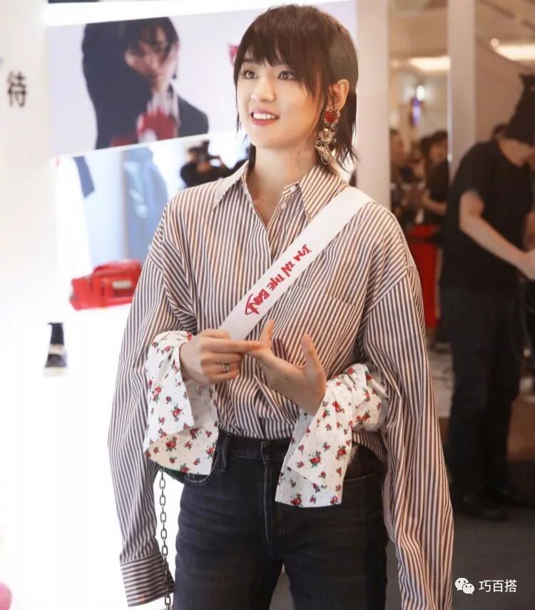 时尚干练男友力max的周笔畅偶尔也会走清新优雅路线。出席活动时,周笔畅身穿一件潮流感十足的条纹衬衣,袖口绣花的点缀使得甜美度up不少,而飘逸的袖带时尚又个性,搭配白色字母背包,酷美的完美结合可以说相当时髦。不得不说,周笔畅真的是一位妥妥的时髦精呀!