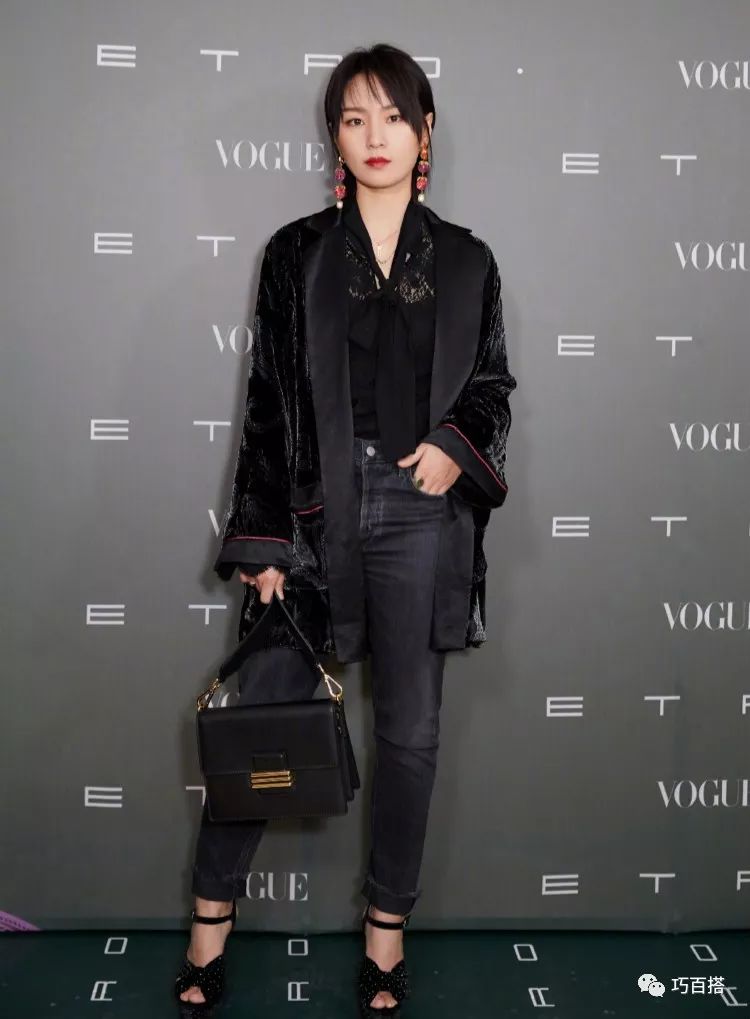 而周笔畅的这身全黑造型则是御姐范儿十足。身穿黑色衬衣搭配黑色牛仔裤,领口深V蕾丝设计眼神脖颈的视觉感,性感撩人。外加一件黑色丝绒外套,时髦又大方极具高级感。脚踩黑色高跟鞋,绑带设计凸显出一丝小女人的韵味,耳朵上佩戴的红色耳环更是全身的一大亮点,可以说相当吸睛。