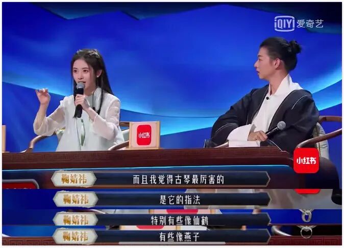 在一档国风的节目里,鞠婧祎富有诗意的描绘了弹奏古琴的指法,