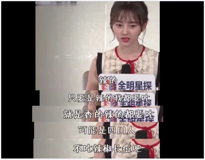 她无辣不欢,而且作为四川人,不吃辣椒会长痘的。