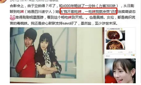最近做饭也都是辣的,见到辣的,都忘了她作为一个女明星,需要一口饭嚼30多次了。
