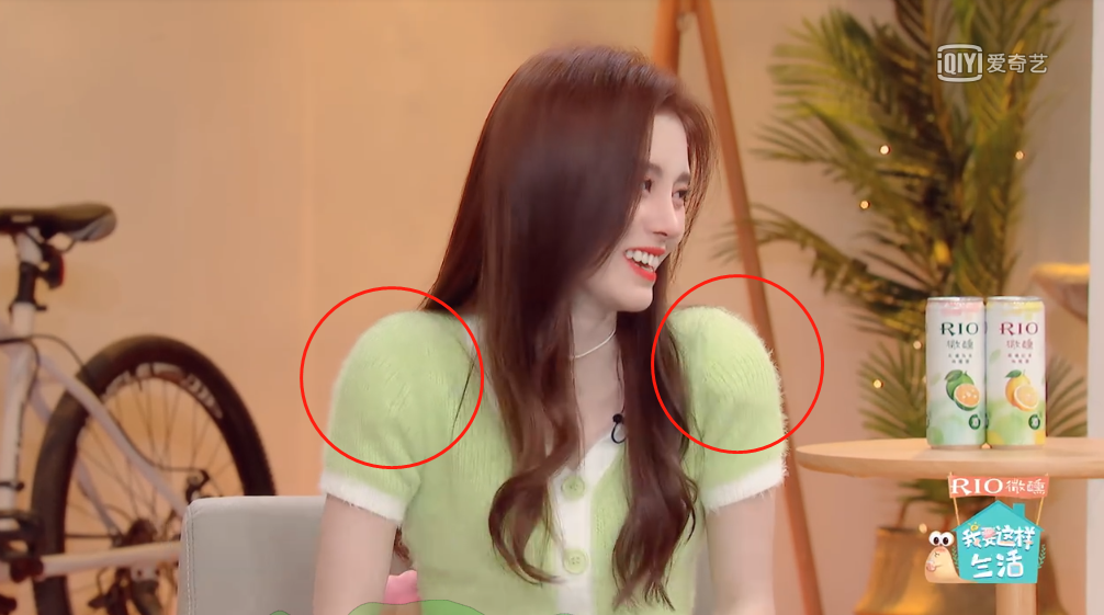 她穿着纱质半透明的衣服,头肩比例像开了大头特效。