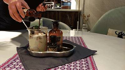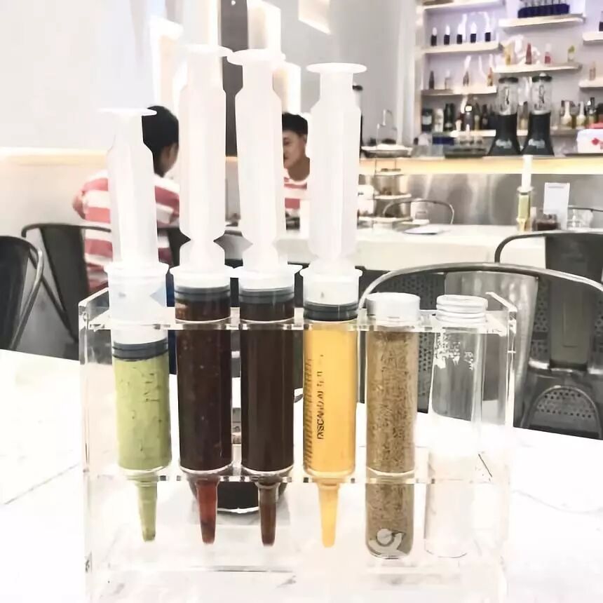 食物、饮料、调料,一切皆可使用烧杯、试管、培养皿、蒸馏瓶等实验室器皿来盛装,这些也成为很好的拍照点,让顾客乐于拍照,主动分享传播。