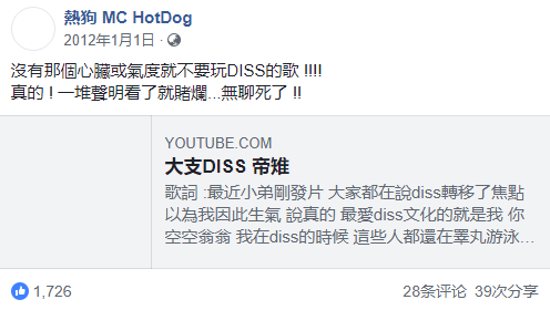 因为大佬们的开火,台湾说唱圈内部一些新人也想要快速出头,毕竟谁都知道,一首牛逼的diss,是最能提高知名度的手段。