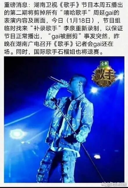 而正当网友们坐等第二期的到来是,今天却爆出消息称:本周五《我是歌手》gai片段将被删。还晒出一张疑似Gai亲自回应的聊天记录???