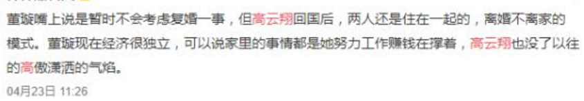 其实早在四月中,就有传高云翔回国隔离期结束,已经回到和董璇一起的家中。还有人看到他们一起带孩子出行。两人的关系顿时成迷。