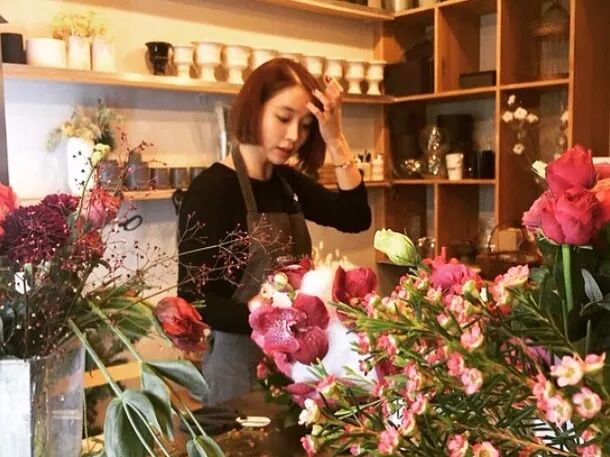 照片中李珉廷正在认真插花的模样。很适合短发的李珉廷的美貌使人印象深刻。V字脸吸引着人们的视线。