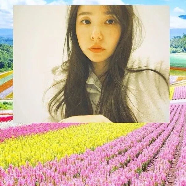 公开的照片中闵孝琳注视着镜头的模样。闵孝琳照片中的花地背景吸引着大众的视线。