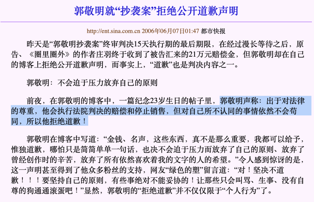 “网络上辱骂诅咒傅小司的人络绎不绝。那些以前骂傅小司商业化作品庸俗没有阳刚的其他没有红的画家,在厌倦了以前的那些论调之后,现在终于找到了新鲜的话题,整天纠缠着抄袭抄袭,似乎傅小司所有拿过的奖项所有出版的画作,以及从小到大的努力,全部都是狗屁。甚至有一些“我还奇怪为什么他的画卖得那么好,原来是抄袭的呀”之类的荒谬言论……”