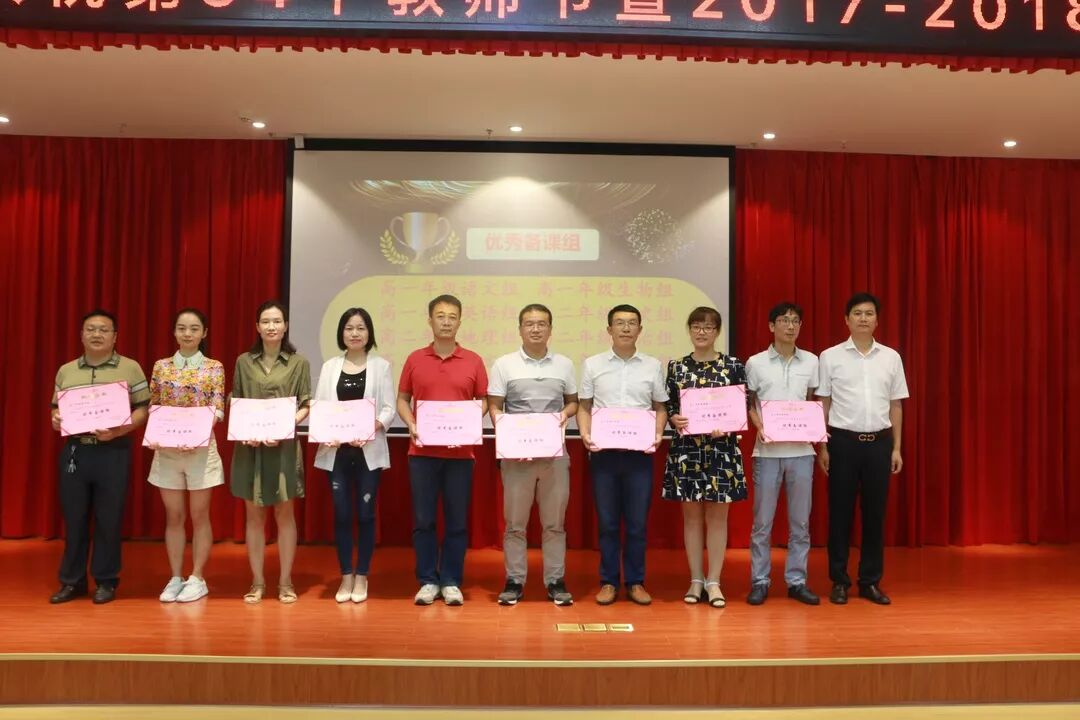 为了弘扬我校教职工的崇高敬业精神,进一步激发广大教职工的积极性、创造性,进一步提升学校管理水平和教育教学质量,经校委会研究决定,对在2017-2018学年度教育教学工作中作出突出贡献的集体和个人予以表彰奖励。本次表彰共设立“优秀教研组”、“优秀备课组”、优秀级部” 3个集体奖项,“优秀共产党员”、“优秀班主任”、“教学优秀奖”、“服务优秀奖”、“管理优秀奖”、“工会积极分子”等6个个人单项奖,“优秀教师”、“优秀服务工作者”、“优秀管理工作者”等3个个人综合奖,共表彰15个先进集体和87名教职工。以期榜样示范引领,激励来年再创辉煌。