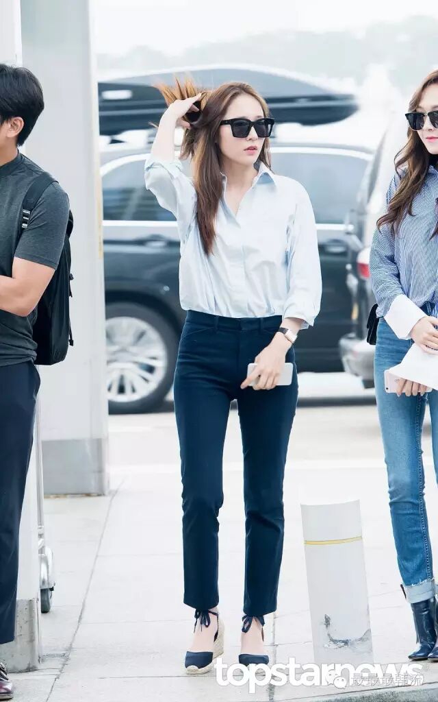 郑氏姐妹最近又一起去机场“拍画报”了,这次两个人都选择了简单的衬衫加长裤的造型,然而画风依然是千差万别。