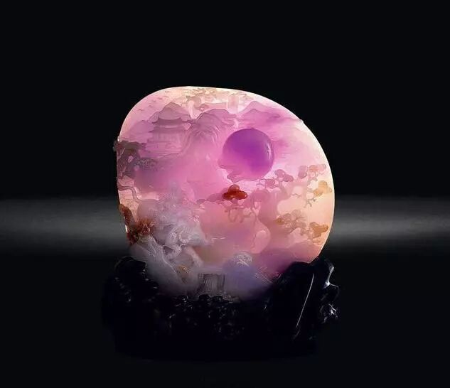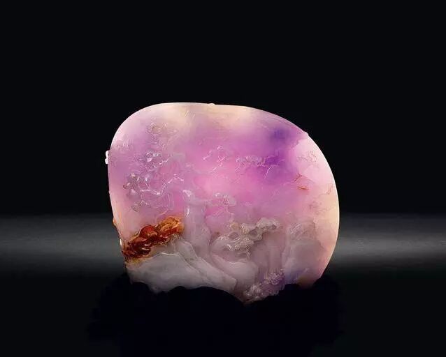 质地细,光泽温润,微透明,颜色浓艳似桃花