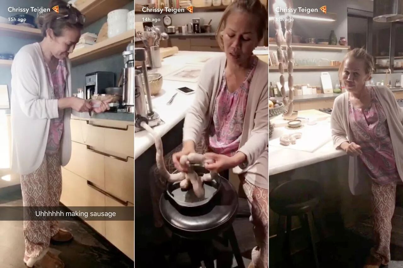 Chrissy Teigen的烦恼大家估计都经历过,一觉醒来自家厨房被占领,灯罩上晾满妈妈做的香肠。