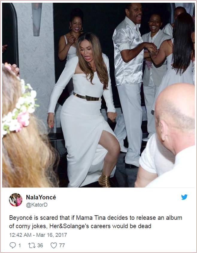 其实还好啦,碧昂斯妈妈和很多五六十岁的爸妈一样。