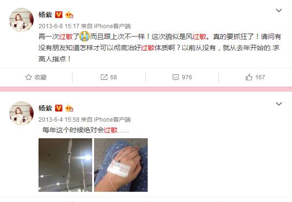 杨紫也是到了季节就会过敏,有人天生就是过敏体质,最好的办法是去医院查明过敏源然后隔绝掉。