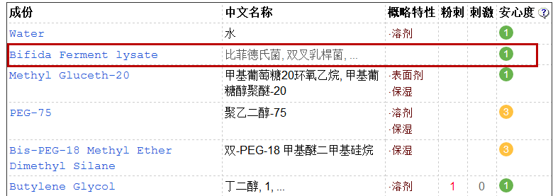 而雅诗兰黛的主要成分就是比菲德氏菌,也就是这个原因小棕瓶一直畅销这么多年,不过脸上有小伤口、发炎、起疹时不要用它,里面的甲基葡萄糖20环氧乙烷会刺激皮肤。