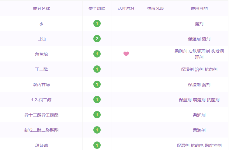 随便给你们截一个保湿水的成分,能看到前排的成分都是保湿剂,而且角鲨烷和我们的皮脂膜极其相似,再敏感的肤质也可以用。