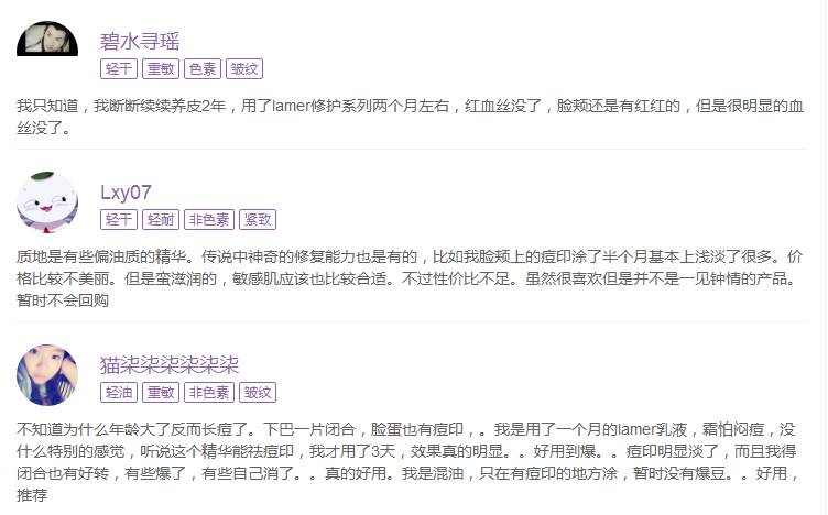 只是硅感比较重,但不用担心会闷痘,任何肤质都可以放心拿去美,推荐给不差钱的宝宝们,给你们随便截几个海蓝之谜的评价感受下。