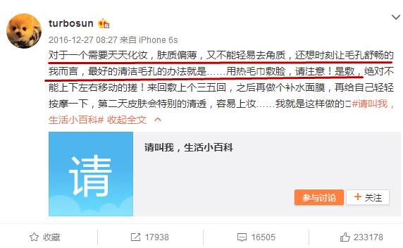 如果实在想清洁毛孔可以参考孙俪的方法,她也是天生皮肤偏薄的敏感肌,用热毛巾敷脸可以加速血液循环,面膜可以暂时的隔绝外界的刺激并快速给角质层补水。