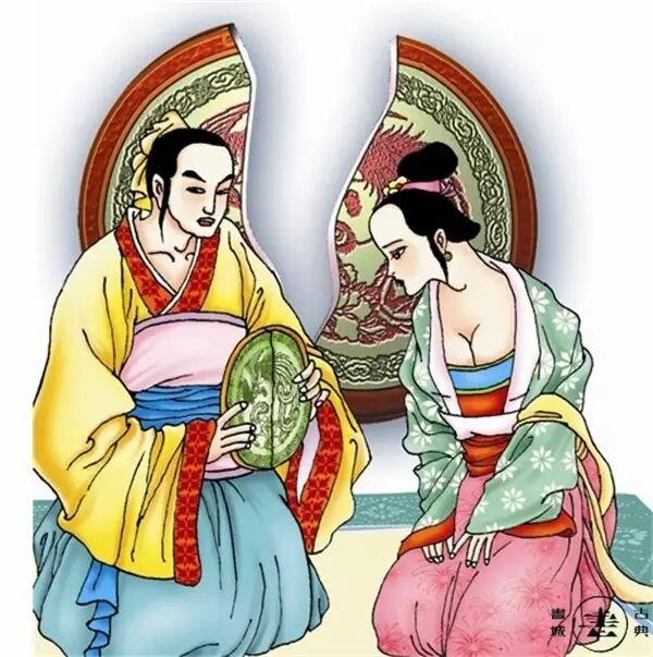 破镜重圆的典故出处就在这里。话说南陈国将要灭亡之时,乐昌公主的丈夫徐德言预料到夫妻将要失散,便把一面镜子摔成两半,一半交给公主,一般留给自己,约定来年正月十五元宵节,在长安闹市以出售破镜子为暗号,互相寻找对方。