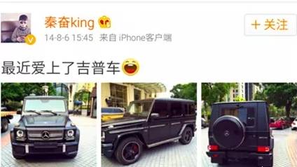 后来,这个坐在废铁上玩手机的车主被网友扒出来,就是超级富二代秦奋。