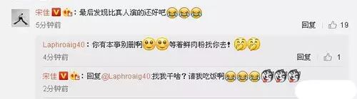 宋佳评论了他,而博主还开玩笑称:你有本事别删啊,等着鲜肉粉找你去!