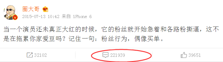 杨洋粉丝因为撕X,威力究竟有多大呢?你看下面这条未点名的微博,评论居然达到了22万之多,杨洋粉丝可能是比“虹桥一姐“更能让各家粉丝和平共处的了——