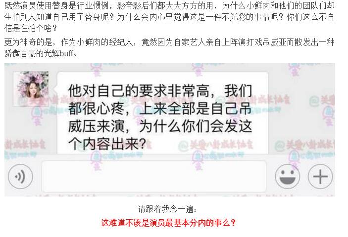 “顾年时”究竟发了什么内容,需要让经纪公司单独拎出来发个声明,我们等下再说。而这封声明发出来的真正背景,可能还是与“小鲜肉替身”事件有关。
