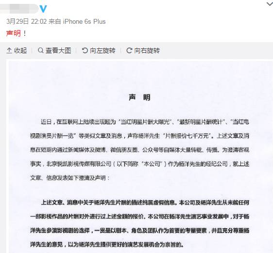 麻烦就在杨洋公司昨天晚上发了一篇声明,也就是本文开头说的那篇声明,把事情从粉丝间的斗嘴变成了官方撕X。