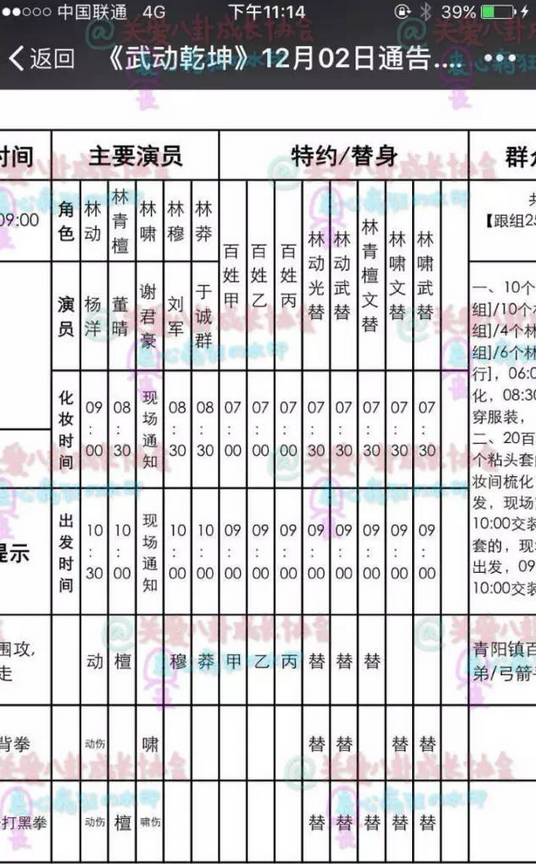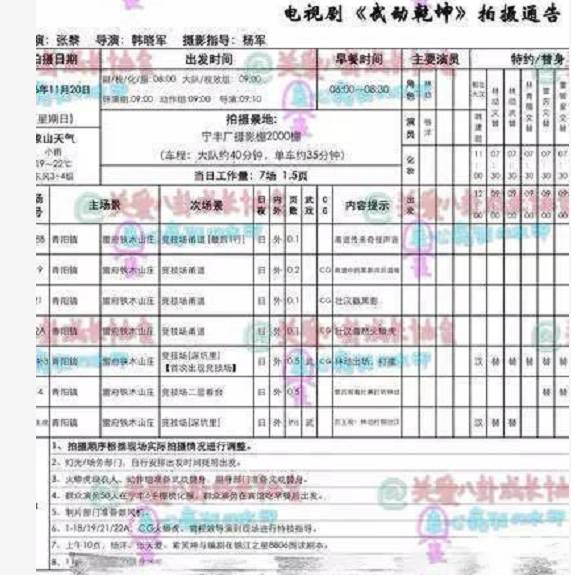 12月9日,“关八”再次上传两张杨洋替身通告图——