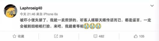 结果鲜肉粉来了,博主删了微博,用他自己的话说:“被吓得小便失禁了”——