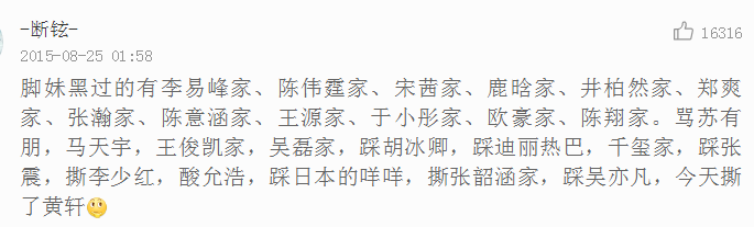 有网友整理出了杨洋粉丝都撕过哪些偶像——