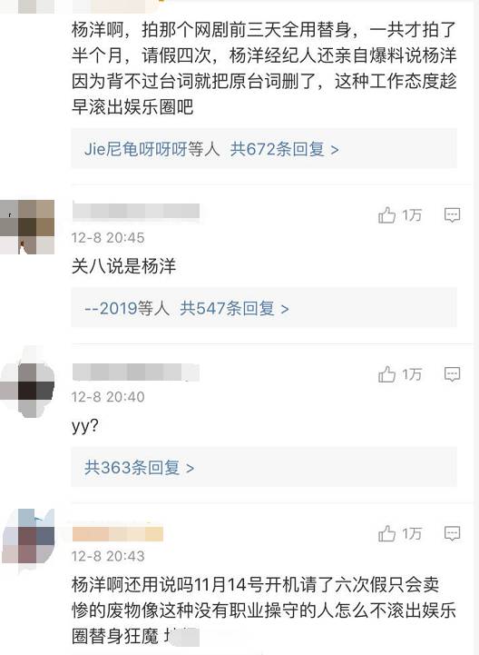 结果“关八”工作人员还爆料,杨洋在剧组因为台词背不下来而删掉台词——