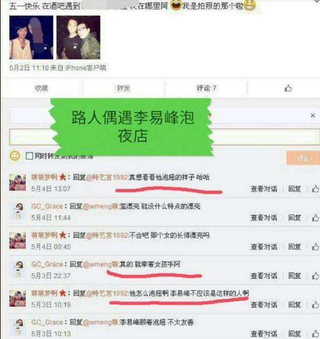 是李易峰的证据一:博主说李易峰进夜店,李易峰确实被路人遇见到过夜店↓↓
