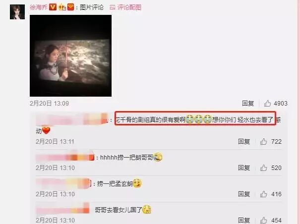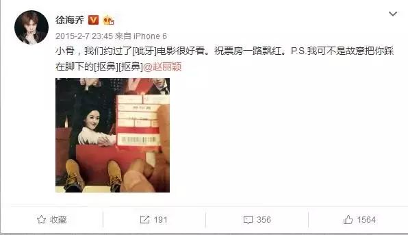在《花千骨》播出很久之后,赵丽颖的新电影上映,徐海乔都会去看。有一次还在在赵丽颖的微博下面晒了在电影院拍的图,不少粉丝当时也感慨这个剧组关系不错。