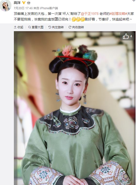 最近还上了一部很火的清宫剧,于正的延禧攻略,不知道大家追剧了吗?这个妹子其实长得还挺清秀的。